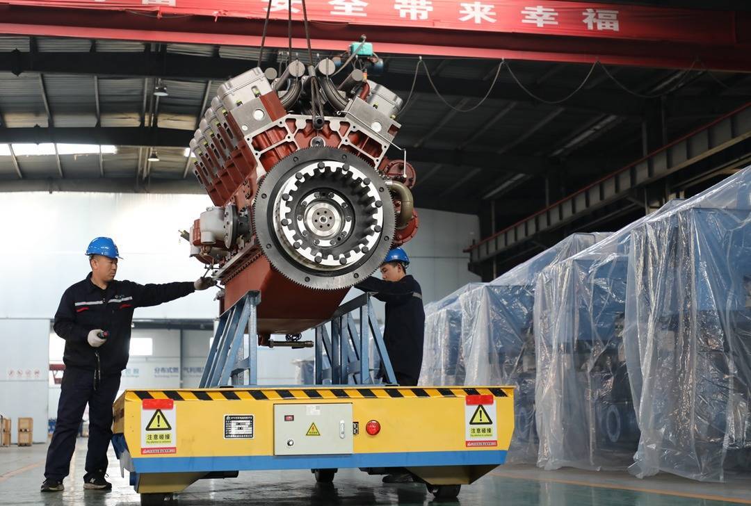 科好意思控股有限公司车间内,工东谈主正在赶制踱步式燃气发电机组订单。(缪宏伟 报谈)