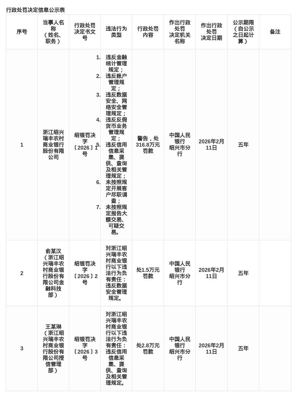 蓝鲸新闻2月14日讯,近日,中国东谈主民银行绍兴市分行发布了罚单,剑指浙江绍兴瑞丰农村买卖银行股份有限公司偏激关系牵累东谈主。